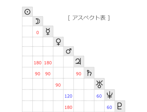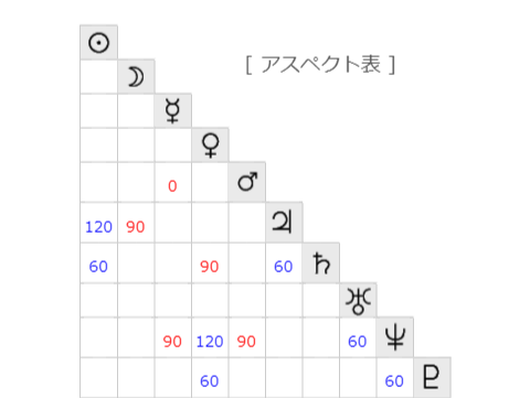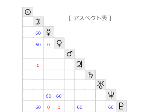 アスペクトは海王星がセクスタイル(60度)、冥王星がややコンジャンクション(0度)。