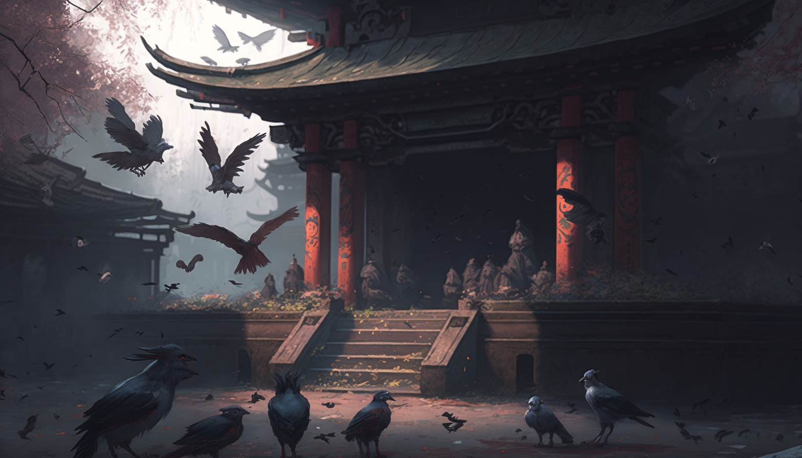 神社でカラスが鳩を食べていた